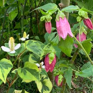 "四季の小径"春〜夏 *今日のお花* <ドクダミ>🤍 独特の臭い!よく見ると可愛らしい^o^ 名脇役のホタルブクロと.....:*☆