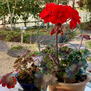 "四季の小径"冬〜春🌺 <ゼラニウム> 素敵な葉色と赤花♪.......(^_−)−☆
