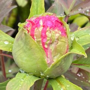 雨の中玄関前の、牡丹の蕾が膨らんできました❣️ 毎年連休に咲いてくるんですが、今年は早いです❣️ このくらいの時が一番ワクワクしますね‼️