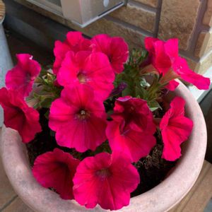 蛍蔓の星の庭がある花友さんのお宅の玄関には、 まるで太陽のような、真っ赤なペチュニアが咲き🌺 インパクト強くて、思わずパチリ‼️