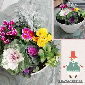 🌺葉牡丹の寄植え🌺 ガーデンシクラメン ジュリアン ヘデラ 我が家の玄関を冬の間、なが〜く華やかにしてね💕✨