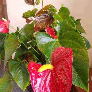 会社のアンスリウム 何か元気ないよ〜😤 水ダーッ😳 あ〜〜〜溢れて絨毯水浸し😭 急いで外に出したら 倒れて鉢 爆発😭 悪いのは私 この子じゃない 🏷あっ火曜日 参加させてくださいね😭 😂😂😂