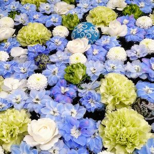 🏷美しく青きドヨウ💙に 花手水で参加致します🙇 青いデルフィニウム💙 黄緑のカーネーション💚 真っ白なバラ🤍 緑の釉薬の器で引き締まって見え、美しい作品です✨ 花手水が見られなくなるのは寂しいとリクエストを頂きましたので、過去picですが… チーム・ブルーの皆様の励ましのお言葉で残ることになりました。 ありがとうございました。 心より感謝申し上げます。 背伸びして頑張ってましたが、本来地味で内向的な性格です。勢い良く来られると、怖くていられなくなります。 どうかソフトに見守ってください。 引き続き、何卒よろしくお願い申し上げます🙇