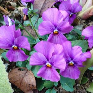こんにちは🌞 風が強いですね🌬🍃 ハーブガーデンのパンジーが綺麗に咲いていました😊 🏷青いスミレ科マニア…😊 落ち葉はご愛嬌で😆🍂