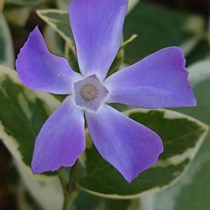 斑入り葉青紫色のツルニチニチソウの花が咲き始めました、綺麗です✨✨