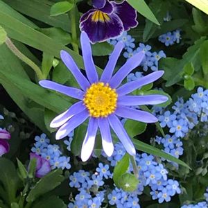 ブルーデイジー 挿し穂から育った私、 忘れな草の寄せ植えの中に植えてもらったよ💠 爽やかな季節が来たね•*¨*•.¸¸♬︎ 🏷(祝)チーム•ブルー10000pic💙