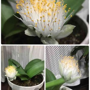 マユハケオモト(眉刷毛万年青) 別名 ハエマンサス ヒガンバナ科ハエマンサス属❣️ 花の姿が眉刷毛(マユハケ)に似て😊万年青によく似た葉っぱをつけることにちなんで「眉刷毛万年青(マユハケオモト)」と名付けられました。 また、ハエマンサス属を代表する品種なことから、別名「ハエマンサス」とも呼ばれることがあります。 花びらはあまり目立たず、雄しべが束になって突出して刷毛のような形になります。雄しべは真っ白でその先端に黄色い葯が付きます🤗