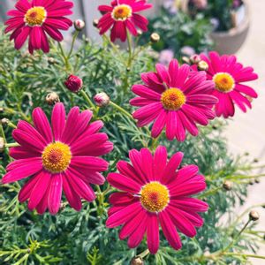 PWマーガレット ホワイトモカとストロベリーホイップ 植え付けから2ヶ月 つぼみがあるけど、真冬は咲かないかな、 頑張ってー✨