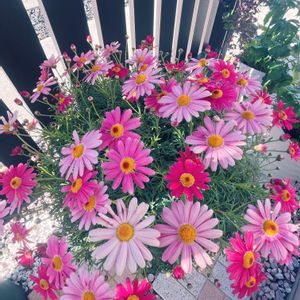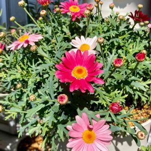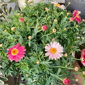 我が家のマーガレットさん ポツポツと咲き出しました🌸 一株の中に白から濃いピンクまであるのが楽しいです✨💕 ベランダ満員なのに、次のシーズンがやってくる😆どうしようかなー
