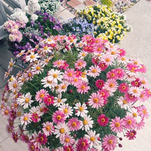PW マーガレット ストロベリーホイップ 11月に植えて3ヶ月半くらい だんだん咲いてきました🌸ピンク色に幅があるのが可愛いですね💕 メモ 22/11/1 6号鉢 23/2/12 7号鉢に鉢増し