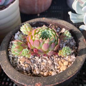 インスタでmamimamima1230さんのプレゼント企画🎁に当選してかわいいdolces多肉が届きました❣️ 上の3個がプレゼント企画でもらった子 左からヒアリナhyb、カナッペ、ホレイ 下のグロブローサは販売で購入して同梱してもらいました❤️ 今日、いきなり暑くなり35℃超えでした。+゚(゚´Д`゚)゚+。 ヒアリナがパッカーンしちゃいましたが何とか生きててくれてよかったぁ₍ᐢ ›̥̥̥ ༝ ‹̥̥̥ ᐢ₎