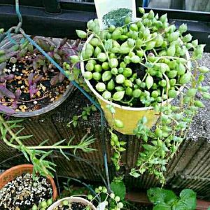 おはようございます😊 Green Handsさんでお迎えしたルビネさんをやっと鉢に植えてあげました😅 この子はお迎えした時からぷっくりしてて、農マル園芸さんとは大違い💦 よくGSで見かけてて、垂れ下がるルビネさんにはもってこいの鉢だなぁとずっと探しててやっと見つけました💕 グングン成長してくれたらいいなぁ😍