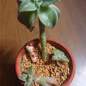 お早うございます。 昨日、毎月13日14日は葉挿し芽の日の新しい投稿を知り早速探して見たら台所に有りました。 初投稿します。♥️♥️
