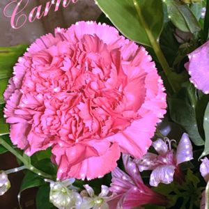 オランダナデシコ カーネーションのピンクの花🌸 フラワーアレンジの中、20日も綺麗に咲いてます❣️ 首都圏に嫁いだ娘の誕生日なのに、会えないです‼️