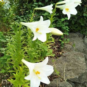 テッポウユリ ラッパに似た筒状の白い花を横向きに咲かせます。 ユリの香りは大好きです。 地植えです。 水やりはほとんど不要です。 楽しみです。
