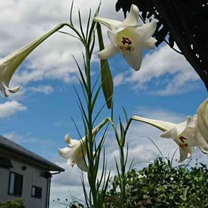 ✨テッポウユリ?✨ 軒下まで伸びたので、見上げて撮影しました😅 太陽に向かって咲いています😊💕
