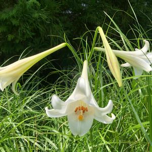 うだるような暑さの中、涼やかな純白のテッポウユリさん達。