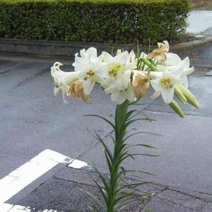 先日の駐車場の隙間に生えた百合は、テッポウユリでした。 車のドアに挟まれてそれでも綺麗に咲きました😄たくましいね。