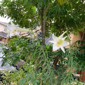こんばんは🌙😃 先日、晴れてた日に撮りました🎵 鉄砲ユリ「トライアンファーター」 大輪でバラより目立ってました(๑•⌄•๑) 今回は鉢植えだけど、次は地植えした方がいいのかな?😊