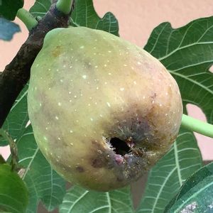 夕方に2年生のバローネAから6個目の秋果を採りました 変形果で目のところがやや大きく開いておりました 果実重は41gで小さかったですが、果肉は軟らかく、甘くて美味しかったです これでバローネAになっている果実は残り1個になりました 20250812収穫 20250812撮影