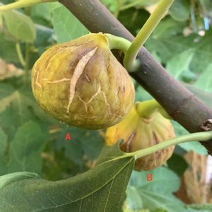 ホワイトイスキアの手前Aと奥Bの秋果の全体が軟らかくなっていたので夕方に採りました(写真1) 6つ目と7つ目の秋果になります 果実Aは17g、果実Bは16gありました 果実A、Bともに果肉はトロトロで甘みがありました このくらいまで熟してから採ると美味しくいただけそうです 20250815収穫 20250815撮影