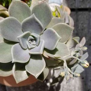 こんばんは 亡き母の育てていた多肉さん。 朧月だと、教えて頂いて 2年目になりました。 この子は、弟のお嫁さんが、育てています。 ハンギングから、はみ出してしまいました。 お花が咲きそうです。 花が終わってから、仕立て直しします。 10センチ以上ある大きな株になりました。