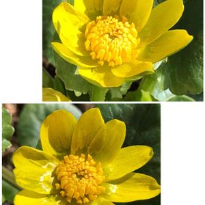 姫立金花(ヒメリュウキンカ) 我が家の姫も咲き始めました👸👑*゚ プラスチックのようなツヤツヤの花びら✨ あちこちに出没するのに、今年は少ないです。