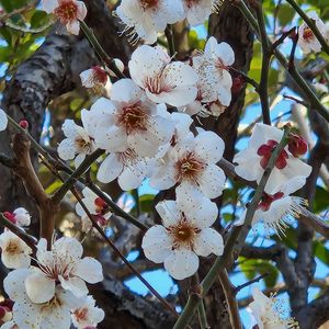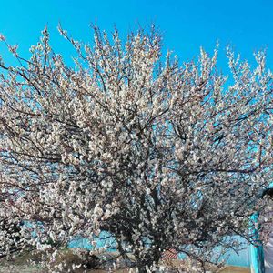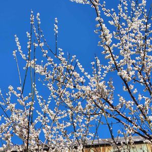 ハクバイ(白梅)⚪️💗⚪️ バラ科 サクラ属 白梅(しらうめ)とも言いますね 🔹梅干し(南高梅のハチミツ漬け、旨し!🥰)や梅酒も👍️😋 🔹梅林や梅園は香り高い、素敵なスポット!🥰 🔹しらうめ と読んでも、良い響き!😅 ──花友さんのお庭──