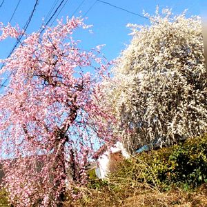 紅白の梅が咲いているお宅のお庭 綺麗ですネ。
