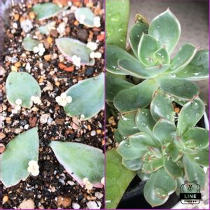 今日も朝から雨☂️ 涼しいのは良いけど、 災害級の雨はもうイヤですね😭 今日も葉挿しの日🏷参加します ⬅️カットした時にもぎった葉っぱを土に置いて数日… もうこんなに芽が出てる胡蝶の舞錦✨✨✨ ➡️6月の葉挿しの日にアップした「サール」 親株もデカベリアの気配がする大きくて強い子 葉挿しっ子も超ビッグ‼️ 今年の初めにトロピカルガーデンさんから「サール」の名前できた子ですが、検索しても全然ヒットしない…💧 多分みなさんの「サル」と同じと思われます😁