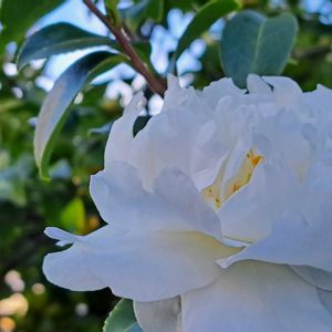 通勤時、とても綺麗なサザンカさんと青空。