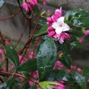 沈丁花、咲きだしました😊 雨に濡れて、葉っぱの緑色も 綺麗🤗