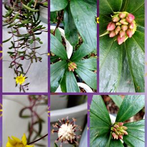 「沈丁花の蕾」 挿し木をしてやっと 蕾が、出て来ました。 左側上下は 「グリーンネックレス」 お花が咲きました。 まだまだ蕾が有ります。 下の白い小さなお花は 「ドルフィンネックレスのお花」です。
