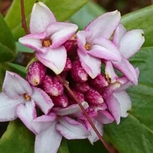 一昨日暖かかったせいか 沈丁花の花が二輪咲きました🌸 二輪でも、とってもいい香りがします。 やっぱり、好きだなぁ 咲いてくれてありがとう