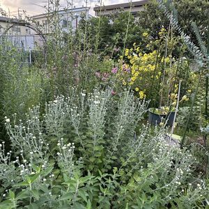 今年の地植えの花たちは、異常に暴れてます‼️ 庭のI部分です。 秋明菊は2mにもなり自立できず! 葉が裏白の菊、早くに芽摘みして丈 低くと思ったのに、枝数増えて良かったけど丈も有り! 姫ヒマワリは3回も芽摘みしたのに1.5mにも成って場所も取り、コバルトセージも去年の1.5倍の丈! みんな可愛くない😞 こんな感じの地植えの場所が他に2ヶ所有り、ナチュラルガーデンと言えば聞こえは良いけれど、見るからにほったらかしの庭‼️ 涼しく成ってきたので少し整理し始めました💦
