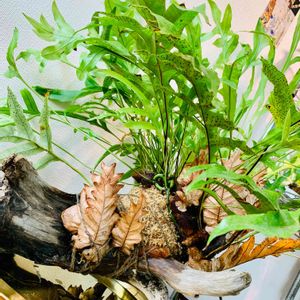 🌿毎月4日はシダ愛好会の日🌿 ドリナリア クエルシフォリア🌿を半分に株分けしました~。 左 鉢植え 中央 板付け 右 おまけ。葉っぱ🌿が千切れたと思ったけど根が僅かについていたので板付。がんばれ!