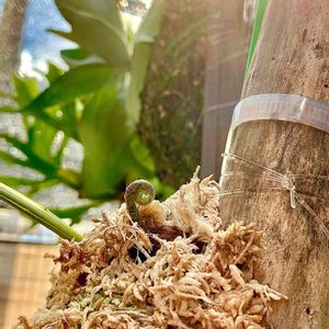 クリームソーダ色よりさらに淡い緑のドリナリア。 シールドリーフが2つ出てきたものの、上向きに伸びました。着生材に垂直につけると団子状になるという、お店のアドバイスも参考に桜の枝に縦につけたのですが、新芽が出たのは休眠株の上の方でした。 結果、下の方が寂しいことに…寒くなったら休眠するでしょうが、来年も下が寂しかったら、付け替えようかしらと思いました。 この株は今年の初め、コロナ前に千円くらいで休眠株を入手しました。寒い環境だったので、枯れても仕方ないかと始めましたが、最近はドリナリアやビカクシダで同じような株でも価格帯が数段上がったようなので、気軽に手を出しにくくなったカテゴリーの1つだと思いました。