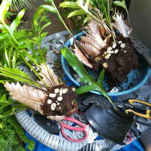 ドリナリア クエルシフォリア🌿をブッタ切りました✂️🔪 プラ鉢に根茎やシールド葉が巻き込んでいたので大手術! 株が思わないところでばっきり別れてしまった…😨😖⤵️💦💦 このあと板付けしたけれどめちゃんこ疲れた~😫