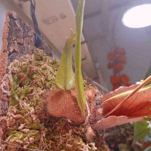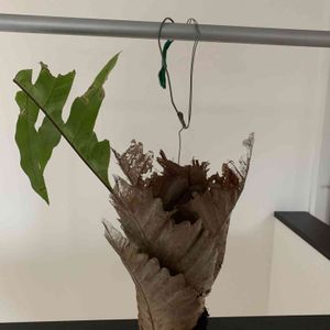 コルク付けにする時に2つに割ってしまった株 左右に付けたのだけど 左側の胞子葉しかなかった方にもシールドリーフが出来ました! 右側のほうもモコモコの根茎を伸ばし、新しいシールドリーフが出来ていました! ただまだ全然カッコよくはない😅