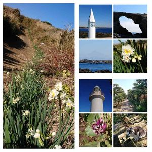 城ヶ島の遊歩道もお散歩しました🎵 良く晴れてぽかぽかでした😃 歩道沿いには、ずうっと八重の水仙が植えられ、よい香り💕 空豆の花ももう咲いていてビックリしました。
