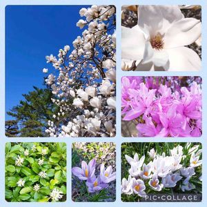 この春出会ったお花たち✨ Ⅱ 左上から時計回りに ♡白木蓮ハクモクレン(2枚) 青空にお花の白が眩いばかり✨ ♡躑躅ツツジ 麗しい花色花姿💖 ♡クロッカス(2枚) 別名ハナサフラン so cute🤍💟(人 •͈ᴗ•͈)💞 ♡富貴草フッキソウ こちらはお初👀✨縁起の良いお名前㊗ 花言葉は「吉事・良き門出・祝意」 花穂の下部分に雌花、上部分に雄花が つく雌雄同株だそうです😲😃 🏷グリーンアクセサリー♪ 🏷星屑ファンタジー に…