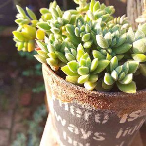 昨日のサボテン棚から移動させた多肉の寄せ植え。しわしわだったのが雨水吸ってぷっくりぷりぷりになりました。