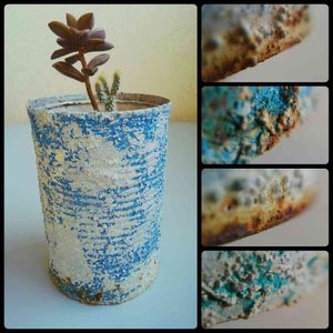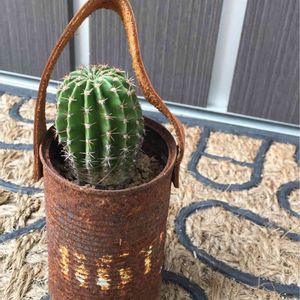 このままの状態で売られてたサボさん。 持ち手は皮だけど、本当のサビサビ缶😅 300円台だし、連れて帰ってきました。