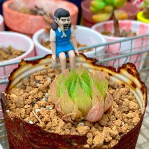 夏に錆びたコンパウンドの缶に 葉挿しした姫秀麗(たぶん) いい感じに育ってきたな〜☺️ 頑張れ〜📣