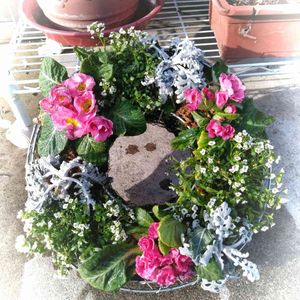 おはようございます👋😃 ・ ・ 去年12月6日に植えたリース(右下四角の中)。2ヶ月経って葉牡丹のひとつが下葉が枯れシナッとなった😂別植えにしてた葉牡丹(真上の緑が多いの)と差し替え。 ・ ・ カルーナはかなり切り込んだ。ビオラは次々に花を咲かせ、優秀。まだまだ楽しめそう🥰後から作った小さいリースも、アリッサムが咲き誇り綺麗です✌️