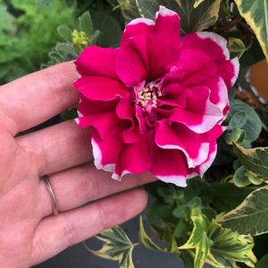梅雨入り前に満開にする予定で摘心を繰り返して大きくしていたペチュニアさん、開花しました💐✨ 予想外の早い梅雨入りで曇天の中ですが、めちゃくちゃ大きな1番花を咲かせてくれました。 これから続々と咲いてくれる事を期待して、日々のお世話を続けていきますっ
