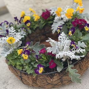 スミレとブラキカムで軽やかなハンギングリース🌱生徒さま作