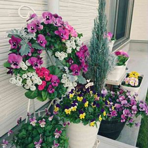 ビオラとハボタンのリース✨