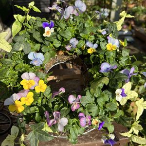 昨日お迎えしたビオラ達、ハンギングリースにしてみました♬ 素人なもんで、なかなかプロの方ようにはいきません😅 ビオラのアンティークカラーは初めてなので、今後咲き進んだ姿が楽しみです☺️