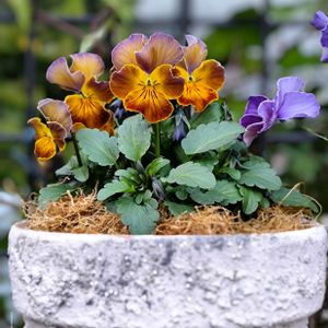 ビオラ エッグタルト🥚 いつものように寄せ植え 今年はNo.1のアントワネット様も一緒に🤭 このブリキ鉢… あまりにボロボロになってきたから 去年で最後にしようと思ってたんだけど まだいけそうなので 今年も使っちゃいました😂 ちょっと薄めだけど 今年も紫が入ったエッグタルトさんです 寄せ植えに使ったベロニカには 紫色の花が咲き始めていました💜 🌸No.38🌸